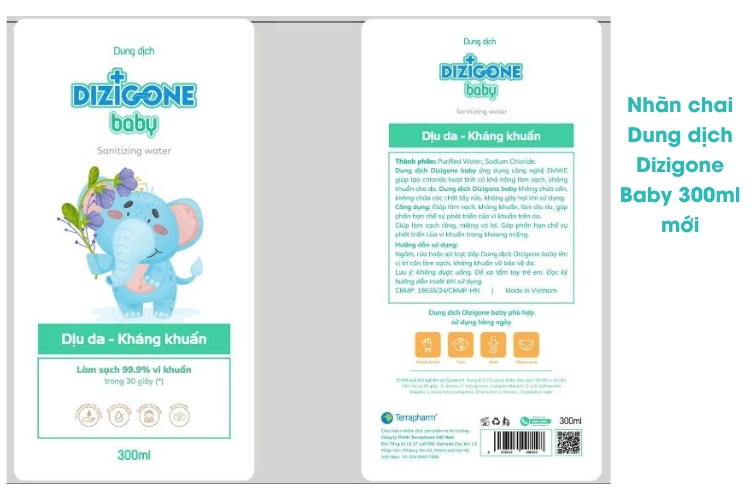 1. Về nhãn chai Dung dịch Dizigone Baby 300ml